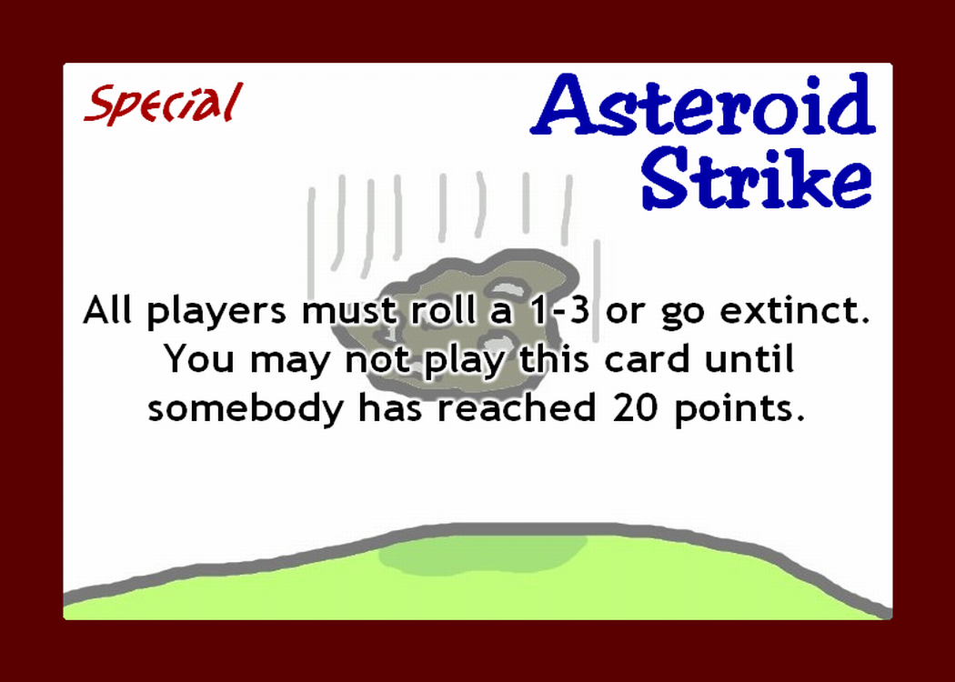 Galapagos is a card-based strategy game where you lead a species in a struggle to survive. Compete with other players for food, or turn on them and eat them! You choose how your species evolves by adding and replacing body parts, and you can try to control the world with special cards and events.